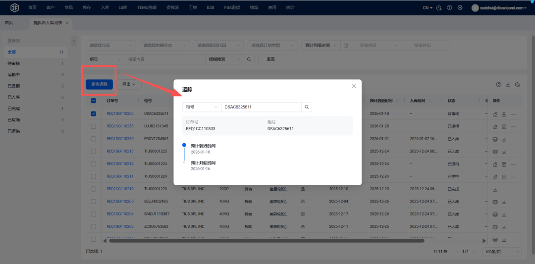 ③提柜后一键确认出库,物流轨迹实时追踪,流程闭环无漏洞。